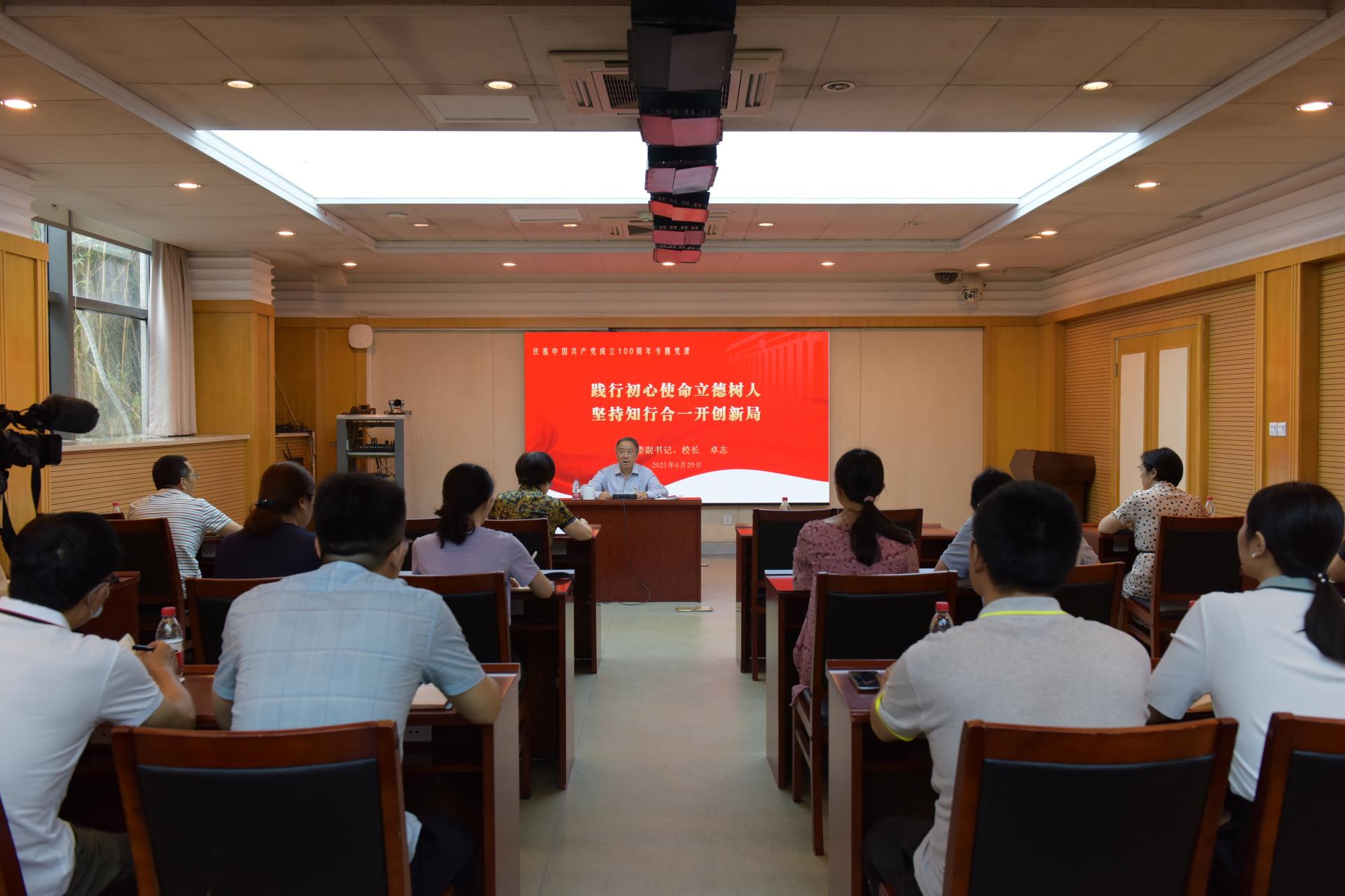 根据学校党史学习教育部署安排,6月29日上午,党委副书记、校长卓志以《践行初心使命立德树人,坚持知行合一开创新局》为题讲授专题党课。校长办公室、发展规划处、审计处、档案馆等单位全体人员参加学习。