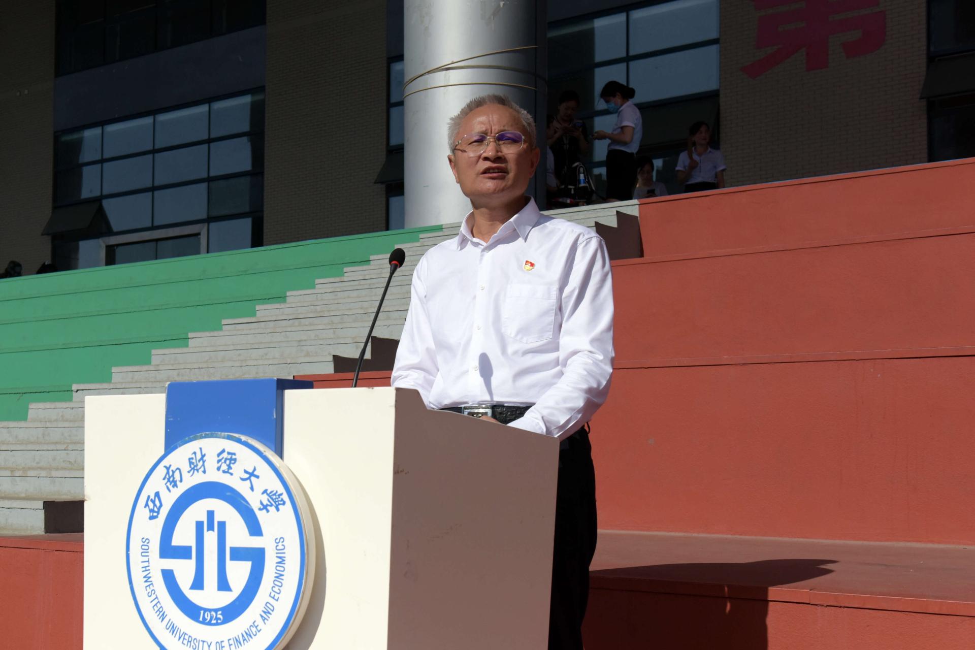 7月13日至7月28日,我校组织2020级本科学生进行为期16天的军事技能训练。全体参训人员以刻苦的精神,昂扬的斗志圆满完成各项军训任务。7月28日,军训总结大会在柳林校区晨曦运动场举行,3700余名西财学子向学校展示军训丰硕成果。党委书记赵德武,党委副书记、校长卓志,党委常委、常务副校长彭龙,党委副书记、2020级军训工作领导小组组长曾道荣,党委常委、副校长欧兵、尹庆双、张邦富、李永强,武警成都支队保障部副部长陈洪亮,军训团团长肖文清,军训工作领导小组成员单位、各学院负责人参加总结大会。人文(通识)学院分党委书记齐琳琳主持总结大会。