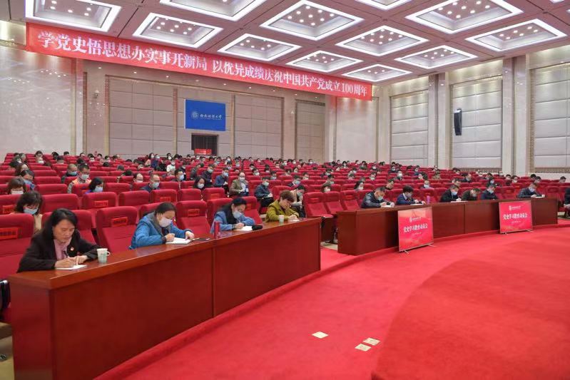 赵德武在讲话中指出,在喜迎中国共产党成立100周年之际,在全党开展党史学习教育,是以习近平同志为核心的党中央立足党的百年历史新起点、统筹中华民族伟大复兴战略全局和世界百年未有之大变局、为动员全党全国满怀信心投身全面建设社会主义现代化国家作出的重大决策。习近平总书记在党史学习教育动员大会上的重要讲话,高屋建瓴、视野宏大、思想深邃,深刻阐述了开展党史学习教育的重大意义,深刻阐明了重点任务和工作要求,对新时代学习党的历史、弘扬党的传统、开启新的征程、创造新的伟业作出重要部署,为我们开展好党史学习教育指明了方向、提供了根本遵循。结合学校96年来形成的光荣革命传统和厚重的红色基因,赵德武强调,全校各级党组织和广大党员、干部要深刻领会党史学习教育“三个必然要求”的重大意义,切实增强政治自觉,从党的奋斗历史中汲取经验智慧和前进力量,从党的非凡历程中读懂强党之路,在新的历史起点奋力推动学校事业新发展。